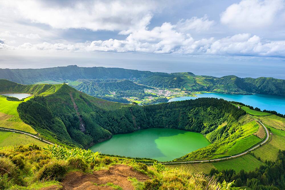 Experience the unique volcanic landscape of Ponta Delgada, an Azorean paradise. Explore the magnificent Sete Cidades twin lakes, visit the lush Terra Nostra botanical park, or taste local wines and cheeses.
