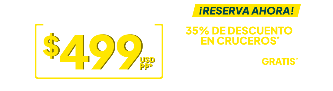 Asegura tu lugar en uno de nuestros cruceros por el Caribe que salen todo el año desde varios puertos de partida. ¡Disfruta de precios especiales en determinados viajes por tiempo limitado!