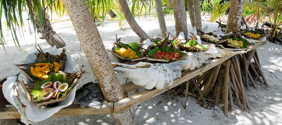 El mercado de Aitutaki abre a las 6 a. m., y vale la pena despertarse para visitarlo. Allí encontrarás platos locales, como Ika Mata (pescado crudo) o Rukau (hoja de taro hervida).