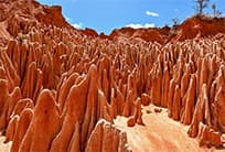 Behold the Red Tsingy, a jagged landscape of earth-toned, chimney-like rock formations that erosion has sculpted out of ...