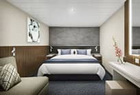 Camarote interior Viaja con todo el confort. Habitaciones modernas y elegantes con dos camas y área de estar. Las comodidades incluyen TV, refrigerador, secador de cabello y más. |