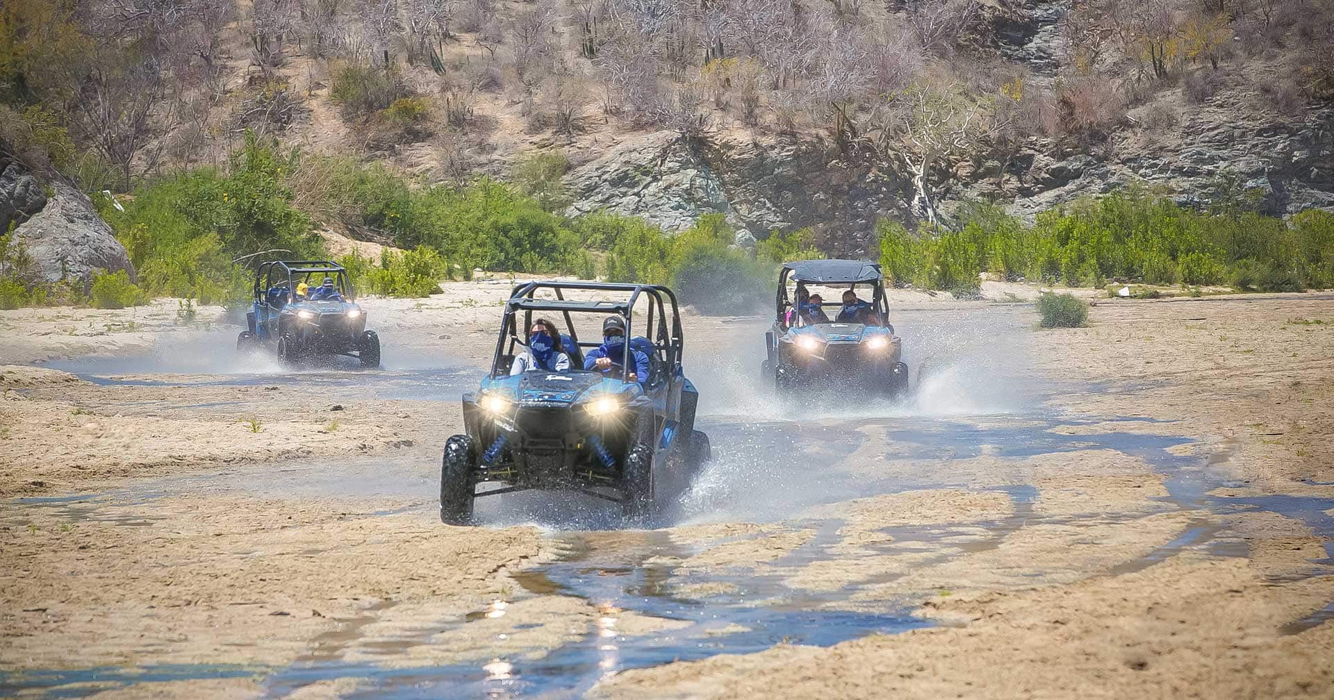 Ultimate thrills and excitement are guaranteed on this off road 4 x 4 adventure. Head of out Cabo to a private Canyon, located on the highway to the Capital of La Paz. On arrival, meet the team and gear up as you board your 4 x 4 UTV. Follow your expert guides as they lead you into secluded canyon road ways, ascend steep climbs, speed through natural waterways, test your skills as you drive expertly over natural rock formations and explore the desert areas of the Baja. The guides are fun and enthusiastic, but are also experts on the local flora and fauna and you will have the chance to learn more about the indigenous plant and animal life of the area. Complete your off road adventure in a beach front terrace where you will enjoy freshly made, classic Mexican Lunch with a choice of traditional Mexican dishes, all with the unique Baja touch. A great way to explore the Baja with you behind the wheel.