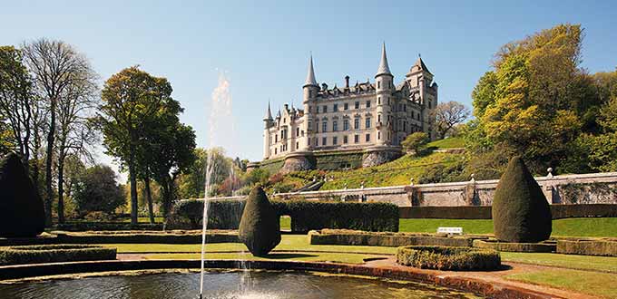 The Earldom of Sutherland is one of the seven ancient earldoms of Scotland and the Sutherlands were one of the most powerful families in Britain who at one time, were the largest landowners in Western Europe. It is against this great historical background you visit Dunrobin Castle. Standing amidst lush, formal gardens that overlook the sea, this white stone chateau contrasts sharply with the usual dark stone Scottish castles. The original keep is still at its heart and your tour of the castle gives you an illuminating impression of the development of architectural styles over the centuries. Seeing the state rooms, bedrooms and nurseries gives you an interesting insight into the lifestyle of the Dukes of Sutherland in Victorian times. The furniture, pictures – including some Canalettos – family heirlooms, and objects d’art have been carefully displayed in their original settings, creating a true reflection of Dunrobin Castle as a family home and not simply as an historical exhibit. You’ll also visit the Dunrobin Castle gardens, equally as grand as the castle, and modeled after those at Versailles.