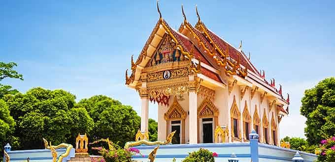 Visit the Kunaram Temple, a small, unique monastery that embodies a true sense of simplicity and tranquility and make. During your visit, you’ll have an opportunity to view the body of Samui's most famous mummified monk, Loung Poh Deang, in a seated meditation position. Stop at the Big Buddha Temple, or Wat Pha Yai, which features a 36-foot golden statue perched atop a wide staircase decorated with dragons. The statue is visible from several miles away, and creates an impressive silhouette against the sea and sky behind it. Considered one of the most colorful temples, you’ll visit Wat Plai Laem for its notable statue of Kwan Yin (or Guanjin), an 18-armed Buddhist avatar of Mercy that sits in the middle of a lake. A short stop at a scenic viewpoint will be made en route.