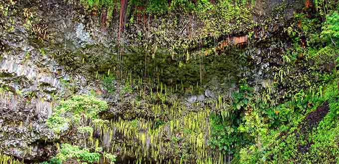 Board a riverboat for a cruise up the tranquil Wailua River as it floats past jungle landscapes on the way to Fern Grotto. This beautiful lava cavern, dripping with ferns, forms a natural amphitheater with excellent acoustics. At the grotto, keeping with island custom, a chorus will serenade you with the traditional Hawaiian Wedding Song.