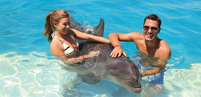 Take full advantage of this unique opportunity to pet them gently and you’ll even receive a dolphin kiss. During your encounter you’ll also learn ways to ensure their preservation and foster the well-being of these amazing creatures. After your activity with the dolphins, enjoy a complimentary lunch at the dolphin marina and free time to purchase souvenirs or photos to remind you and your family of this incredible experience.