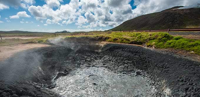After lunch we’ll drive onwards to Krýsuvík geothermal area where the striking landscape has been shaped by volcanic eruptions and violent movements of the earth. In the geothermal field powerful jets of steam escape from deep below the earth’s crust and the multicolored pools of boiling mud bubble and pop continuously. We will pass lake Kleifarvatn on our way back to the city with a possible stop at Indjánahöfði cape. We will also experience some jeep adventure when passing through Breiðdalur valley. Finally, we return to Reykjavik and the pier.