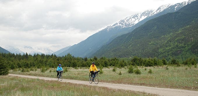 The Skagway Triple Adventure is the ultimate Alaska outdoor experience! You’ll bike through the coastal temperate rainforest onto the tidal flats, hike a portion of the historic Chilkoot Trail, then float down the glacial-fed Taiya River on a relaxing raft journey. You’ll get to do it all on this one excursion! This amazing tour starts with a 25-minute narrated van ride to the historic Taiya River Valley. Once home to 10,000 stampeders, nature has now reclaimed the land.