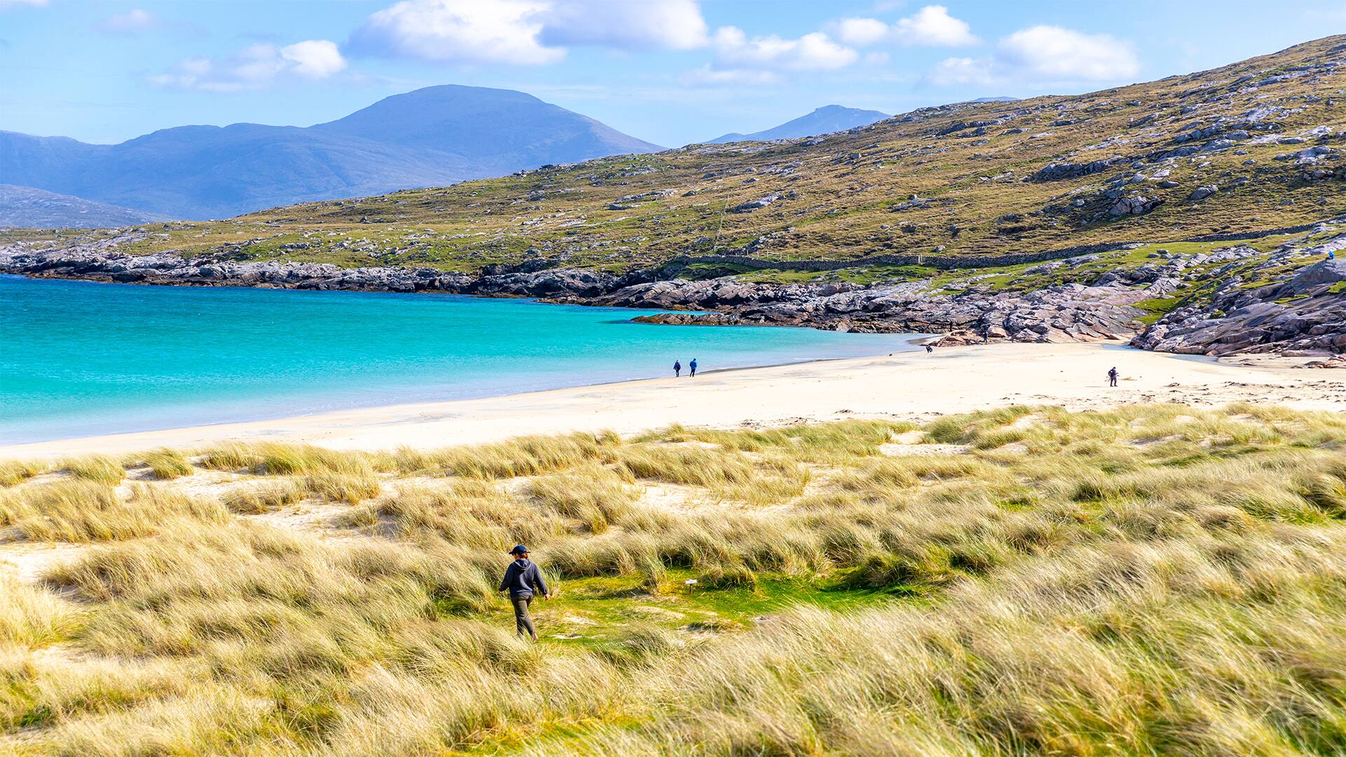Explore the island-dotted western coast of the Isle of Lewis, a gorgeous seascape known for its natural beauty and abundant wildlife. After an extraordinarily scenic drive across the Isle of Lewis, you will board a boat in Maivaig, a settlement of just a few buildings. The name Maivaig is Norse for “narrow bay” and perfectly describes its setting. As you head into more open water, you will pass beautiful Reef Beach – whose sugar-white sand and turquoise waters look surprisingly Caribbean – and a collection of islands such as uninhabited Pabaigh Mòr, which is known for its sea caves. If the conditions permit, you may enter one of the caves before continuing on to the blue lagoon of Pabbay. Because this area is so remote and undisturbed, marine life such as seals, dolphins and basking sharks are often spotted. Seabirds are also plentiful so keep an eye out for gannets, guillemots and razorbills.