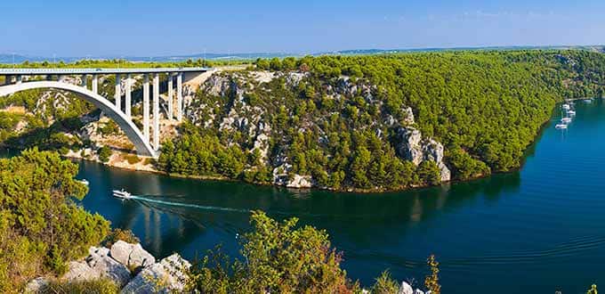 Along the road, you’ll stop to admire the views from Odmoriste Krk, one of the most attractive rest areas on the Adriatic Coast. It is situated on the left of the river Krka where the bridge connects two banks, on the rocks from which a beautiful view extends over Lake Prokljan, the river Krka and the town of Skradin. Surrounding the rest area are fields of plants, lavender, rosemary, sage and hundred year old olive trees.