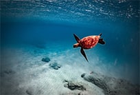 A guide will snorkel along with you to point out the more interesting marine species such as parrotfish. These neon-colored fish usually swim in schools and have the unique ability to change their color and even gender over their lifetime. You may also spot teeny, orange-and-white striped clown fish taking refuge in the tentacles of sea anemones. The gentle current around the reef will eventually nudge you toward the shore, allowing you to drift snorkel without expending much energy.