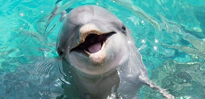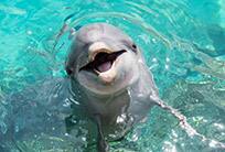 Now it’s time to meet the dolphins! Everyone is outfitted with a life vest and stands on a submerged platform in waist-deep water. A happy, playful dolphin will swim over to you as your Dolphin Encounter begins. Touch the dolphin’s soft, smooth skin and watch as it rolls over for a belly rub. Get ready for the thrilling finale – a gentle dolphin kiss!