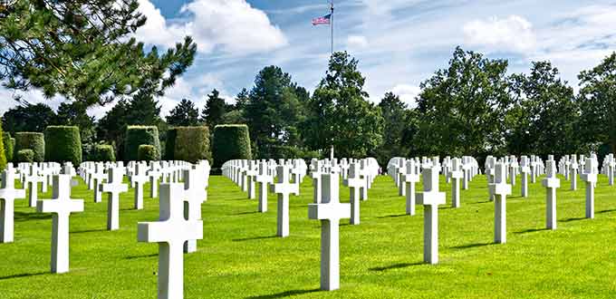 Drive to Port en Bessin for lunch before heading to Colleville Saint Laurent for a stop at the American Cemetery where more than 9,000 marble crosses stand aligned in an impressive site overlooking Omaha Beach. A memorial, inscribed with a map of the operations and preceded by a pool, stands in the central alley surrounded by trees. Drive to Pointe du Hoc, which was heavily fortified by the Germans to serve as an observation post. During D-Day, American troops climbed the cliffs with rope ladders. After witnessing part of World War II, reboard your coach for the return drive to Le Havre.