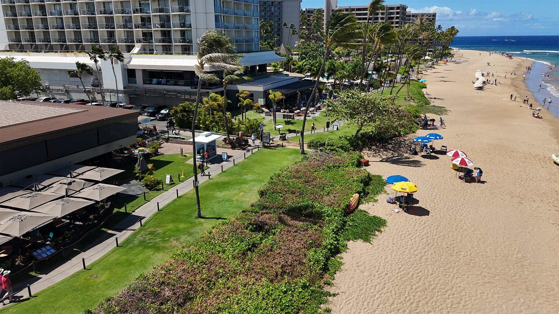• Enjoy the mall’s open-air setting right on Kaanapali Beach.