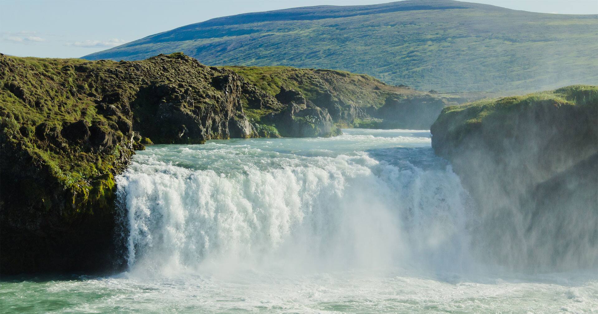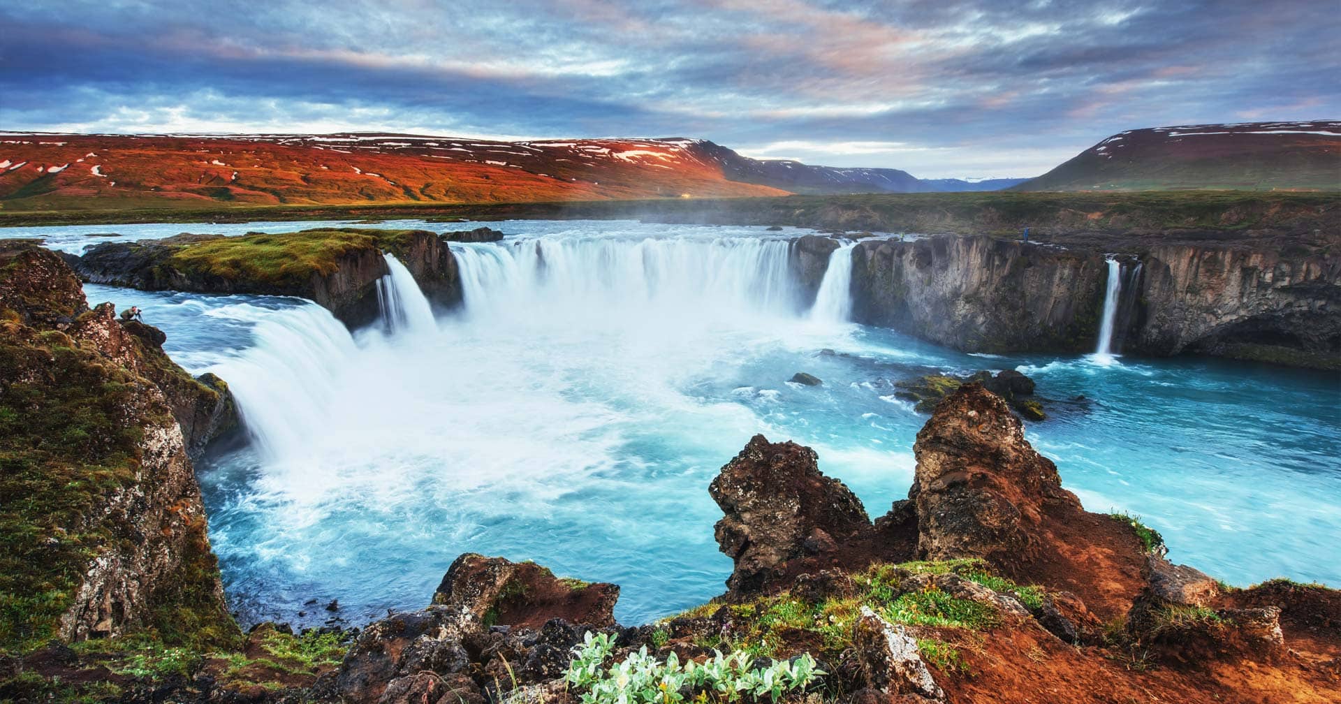• Hear the mighty “Waterfall of the Gods” – Godafoss – roar as it thunders over a wide horseshoe cliff.