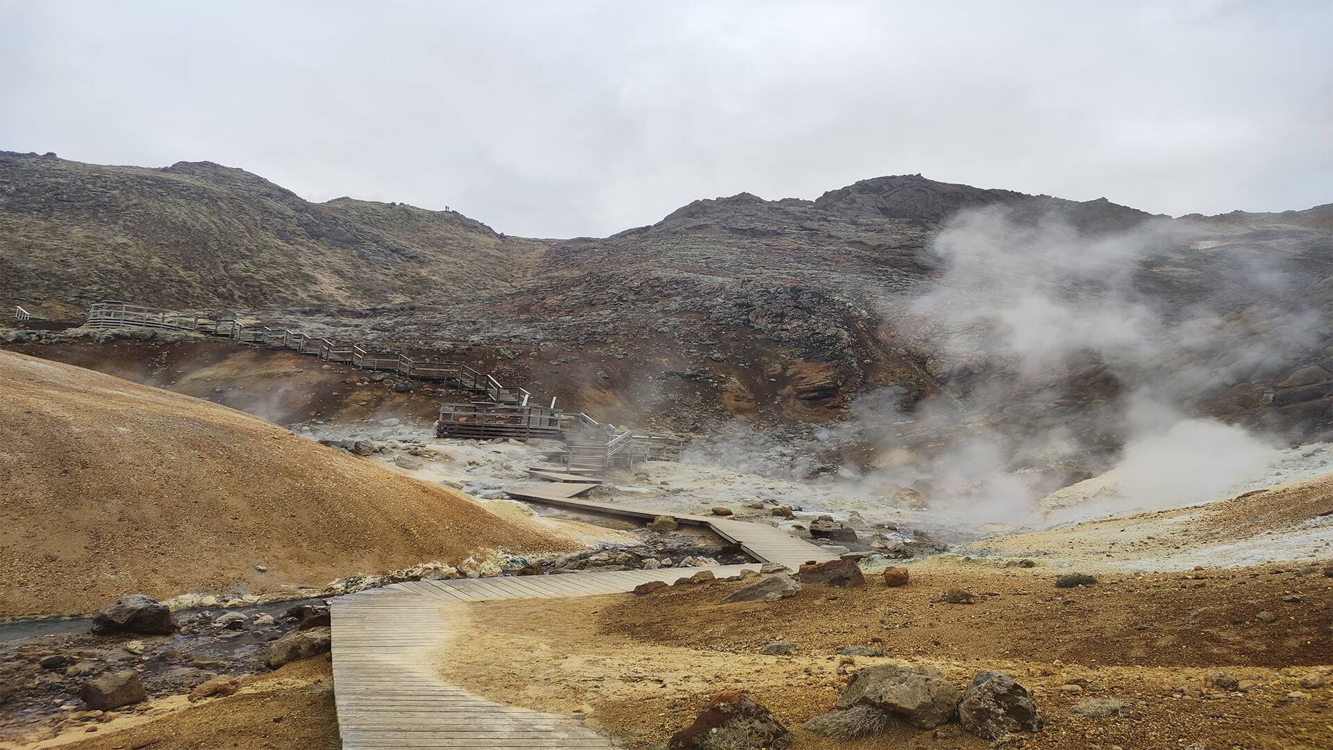 • Behold boiling mud pools and hissing steam vents at the Krysuvik Geothermal Area.
