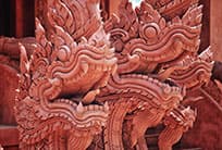 Designed as a pagoda-shaped pavilion, the building is over 340 feet tall, and a fusion of religion, culture and art. Originally crafted entirely from Thailand's native teak, parts of the Wooden Pavilion have been replaced by the more durable redwood to withstand the ravages of the salt air. Every square inch of the building is covered with intricate and detailed wooden sculptures depicting the Ancient Vision of Earth, Ancient Knowledge and Eastern Philosophy. Once inside, you will have an opportunity to view the cavernous inner chapel, which reveals scenes from Chinese, Hindu and Buddhist traditions.