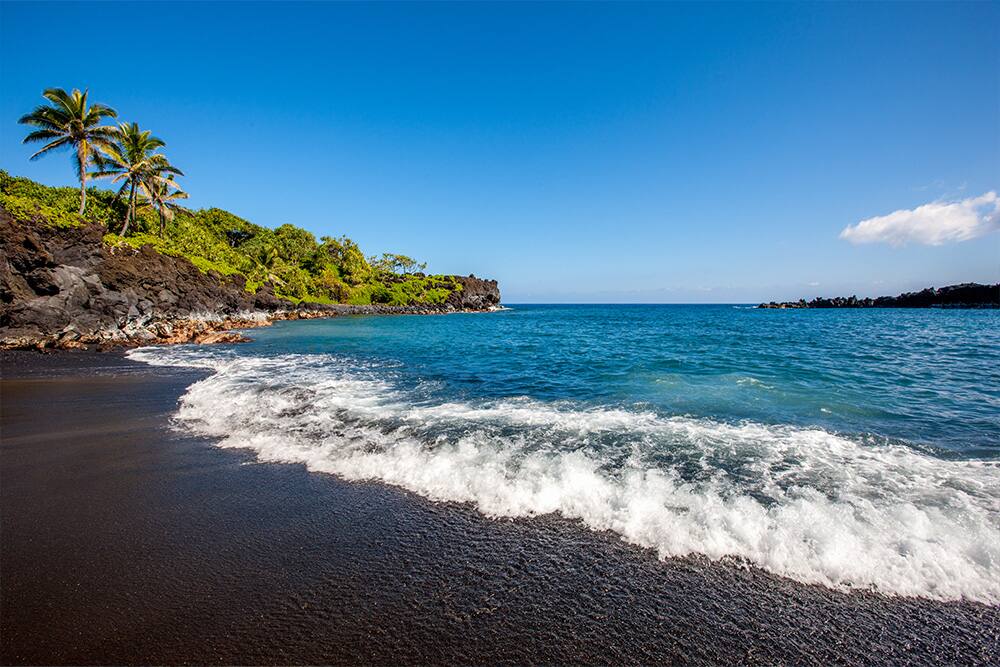Playa de arena negra Honokalani, Wainapanapa, Maui, Hawái