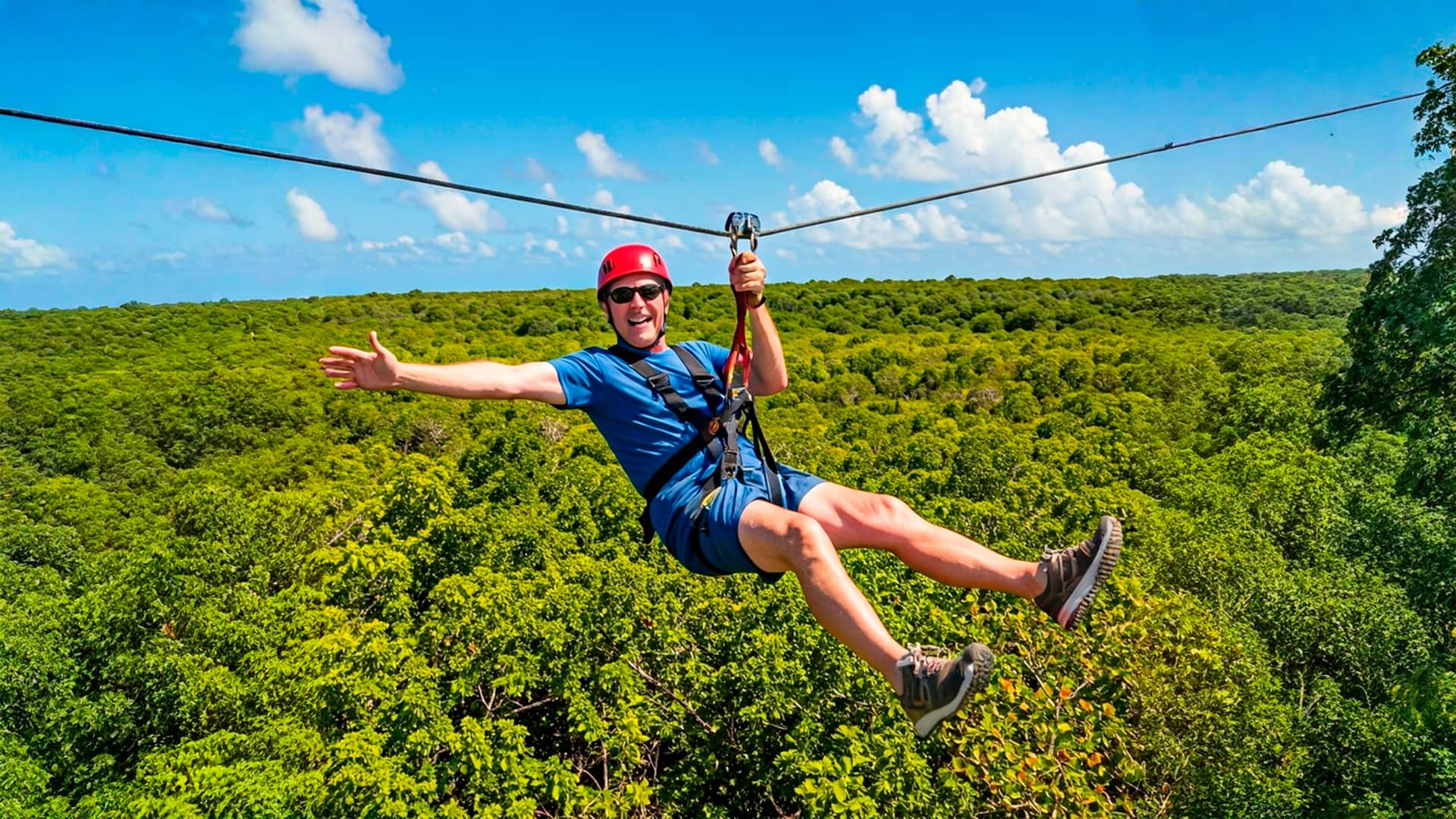 Race high above the ground on the exhilarating ziplines at KUZÁ Beach & Adventure Park—the island’s largest and most unique themed attraction. Set against crystal-clear turquoise waters and pristine white sands, KUZÁ offers more than 50 acres of thrills, relaxation, and Caribbean beauty—all in one unforgettable day. All these exciting activities and more are included so there will never be a dull moment. You will tear through the tree canopy at hair-raising speeds on four different ziplines, each one an adrenaline rush as you soar between the zipline towers. You will be treated to a literal bird’s-eye view of the gorgeous tropical landscape below so don’t blink because it will go by fast. Additionally, the main Penta Tower of the circuit features a climbing obstacle circuit, designed for those seeking an adventurous way to reach the top. Afterwards, there will be plenty of time to relax by stretching out on the beach at Cozumel’s largest private beachfront. Add a selection of Mexican and International dishes in your buffet lunch and unlimited domestic drinks – all included, as well – and it will be a day of nonstop pleasure.