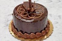 Whipped to perfection using a combination of heavy cream, sugar, and the finest dark chocolate, this 7" torte is then topped with a thin layer of ganache, drizzles of milk chocolate, and adorned with chocolate shavings. (Ganache is a glaze, icing, sauce, or filling for pastries made from chocolate and cream. Ganache is normally made by heating cream, then pouring it over chopped chocolate of any kind.) |