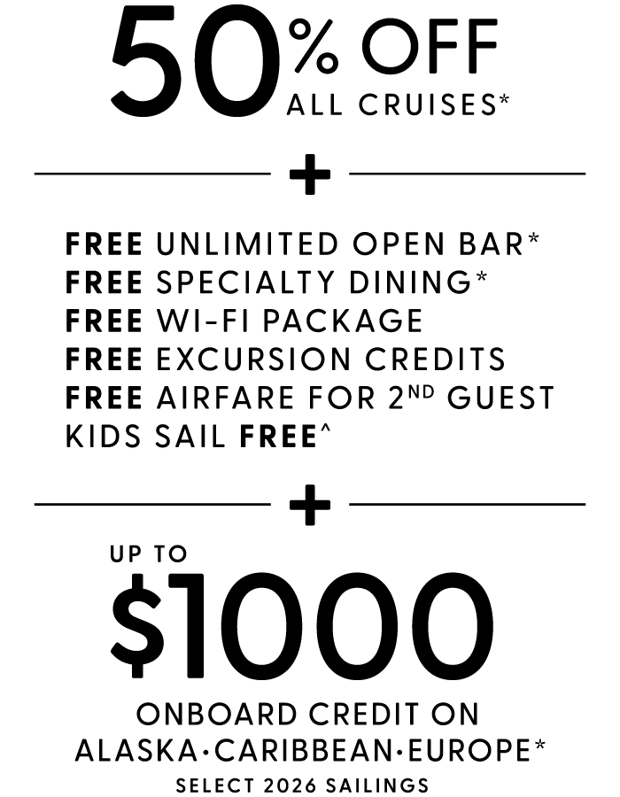 Package not available on sailings less than 5 days or charter sailings.