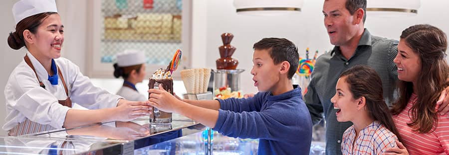 Serving a wide variety of culinary delights to please every palate, our complimentary dining options include three main dining rooms, a help-yourself buffet and a variety of casual cafés, grills and on-the-go choices. Plus, our Main Dining Rooms offer a menu that changes daily, Chef's Signature Dishes and carefully selected wine recommendations, guaranteeing a different culinary adventure with every visit.