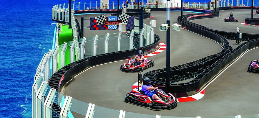 As the largest ship in our fleet, Norwegian Bliss is custom-built for the spectacular. The stunning Observation Lounge has floor-to-ceiling windows, featuring 180-degree views designed to feel one with the great outdoors. Or head outside and stroll along the quarter-mile promenade known as The Waterfront®. Every seat boasts the best view in the house here, meals are served oceanside, and sunsets are best enjoyed with a cocktail in hand. Imagine exhilaration while exploring the wilds of Alaska. Imagine relaxation upon finding your slice of paradise in The Caribbean. Ready for action? Zip around hairpin turns on the Bliss Speedway, enjoy a playful day at Horizon Park or putt a quick nine of mini golf. With a wide-range of dining options– including a complimentary 24-hour eatery and Specialty Dining standouts like Cagney’s Steakhouse and La Cucina, mealtime is always a great time. There’s one word to describe the experiences awaiting you on one of Norwegian’s grandest ships: Bliss.