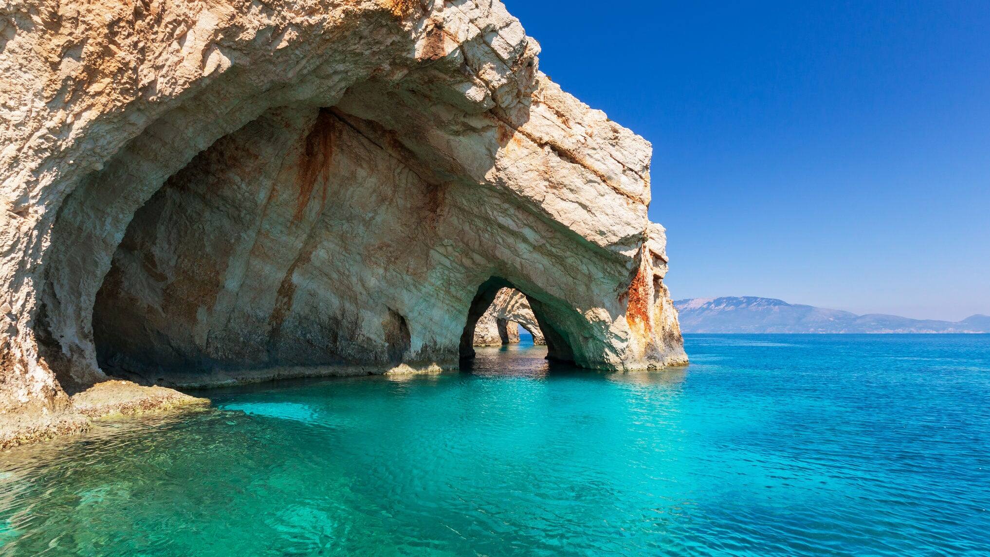 The beautiful island of Marathonisi or Turtle island in the bay of Laganas.
