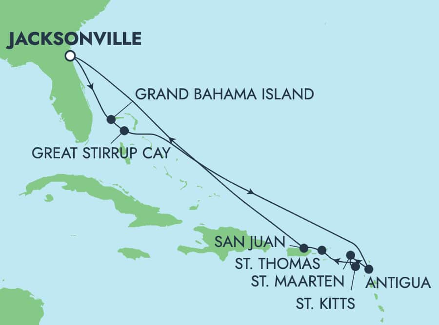 Come experience a different winter wonderland in The Caribbean with Norwegian.Then snorkel among colorful tropical fish and green sea turtles in St. Thomas at Turtle Cove. Come aboard a 5-star catamaran in Philipsburg and cruise along the island’s incredible coast as the boat staff serves you a gourmet lunch while you enjoy an open bar and fantastic vistas. On our private island, Great Stirrup Cay, you can unwind in a private luxury villa situated along our exclusive lagoon and indulge in a massage at Mandara Spa.
