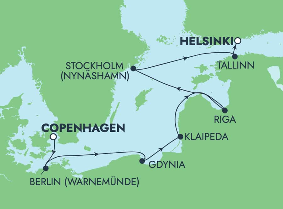 Set sail on an unforgettable 7-day journey through the Baltic Sea, beginning in the vibrant city of Copenhagen and concluding in the charming streets of Helsinki. Along the way, Northern Europe’s rich history, captivating culture, and stunning beauty will reveal themselves at every turn. In Warnemünde, Germany, enjoy a scenic drive to Berlin to explore iconic landmarks like the Brandenburg Gate and the Berlin Wall. In Klaipeda, Lithuania, dive into a hands-on cooking class, savoring pink beet soup and sampling local beers after a tour of the historic Svyturys Brewery. In Nynäshamn, Sweden, immerse yourself in Stockholm’s royal history at the Royal Palace or indulge in traditional Swedish delicacies on a culinary tour.