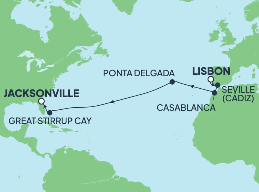 Come aboard Norwegian Dawn and embark on an exciting transatlantic cruise from Lisbon to Jacksonville. Go from Lisbon to the charming 13th century Obidos — considered one of the country’s most romantic villages — stroll colorful, narrow cobbled streets and visit the medieval castle. Dip into relaxation in Ponta Delgada’s natural hot springs and soak in scenic vistas while touring the countryside. On our private island, Great Stirrup Cay, you can unwind in a private luxury villa situated along our exclusive lagoon and indulge in a massage at Mandara Spa. From scenic wetlands to miles of pristine beaches and trails ideal for biking and hiking, Jacksonville’s Big & Little Talbot islands are your ideal backdrop for a day of relaxation, exploration or a little of both.