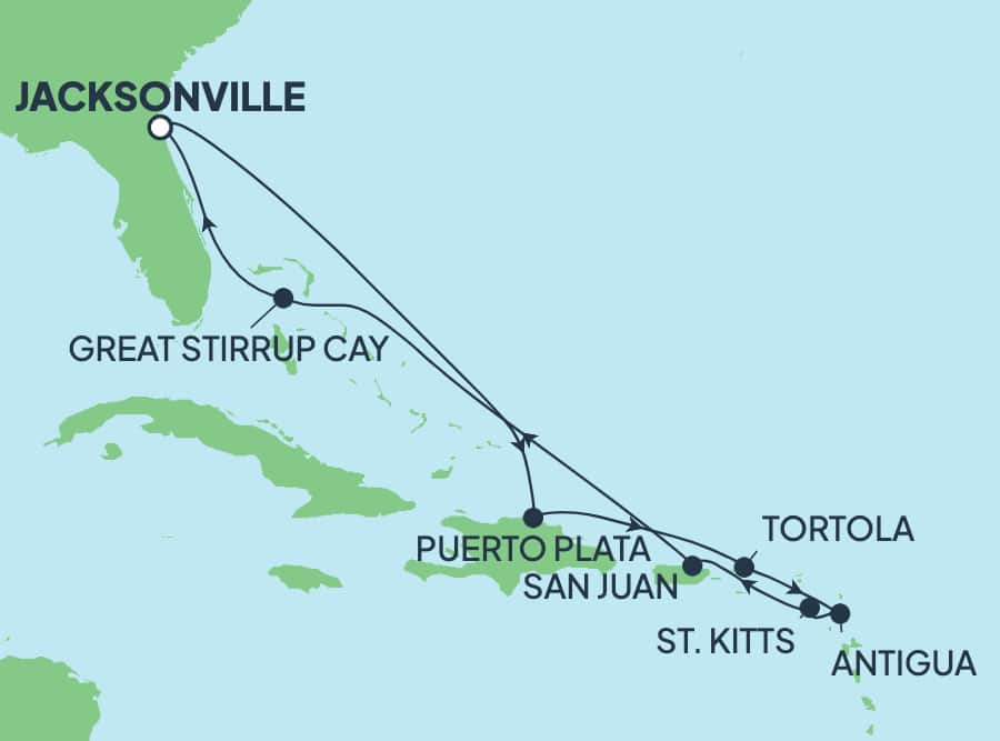 Come experience a different winter wonderland in The Caribbean with Norwegian. In Puerto Plata, uncover the local history at the 16th century Fortaleza San Felipe or embark on an off-roading adventure through lush jungle to swim in cascading mountain pools. Take in the beautiful turquoise waters and the laidback island vibes on Long Bay Beach in Tortola. Then grab a frozen drink and lounge in your private beachfront cabana on Great Stirrup Cay, our tropical paradise just for you. On our private island, Great Stirrup Cay, you can unwind in a private luxury villa situated along our exclusive lagoon and indulge in a massage at Mandara Spa.