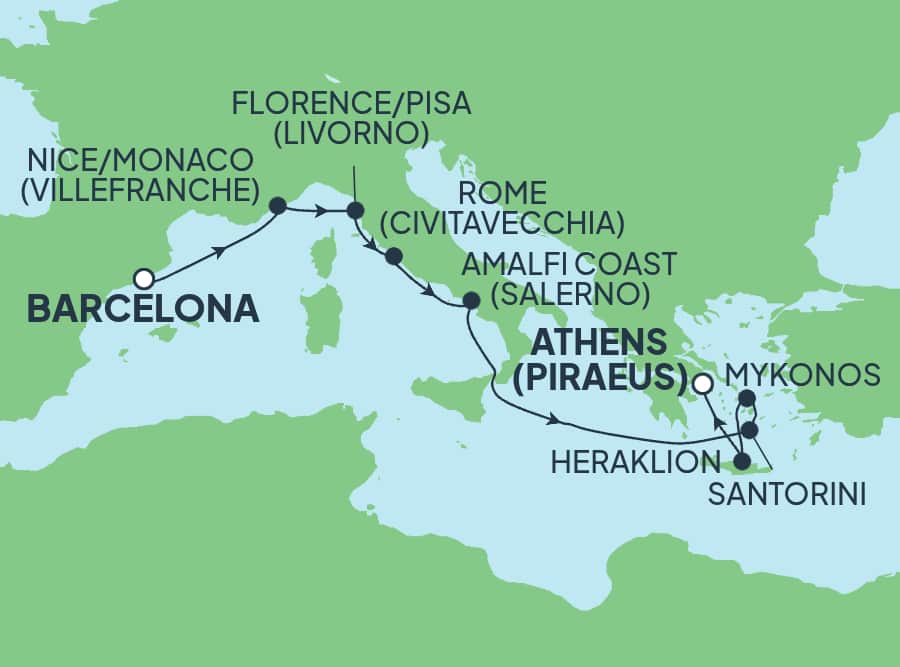 Cruise through the best of five European countries aboard Norwegian Sky. Enjoy a short ferry ride from Mykonos to the island of Delos — a UNESCO World Heritage Site and the mythological birthplace of Apollo and Artemis — and visit some of the well-preserved ancient ruins. Outside Messina, visit two enchanting medieval villages, Taormina and Castelmola, set upon dramatic cliffs overlooking the sea. Nestled on the west coast of Tuscany, charming Livorno offers the freshest seafood, awe-inspiring forts and splendid coastal views with ample cafes and boutiques awaiting your discovery.