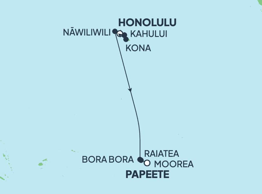 Explore 3 unique ports in French Polynesia and 5 in Hawai`i.