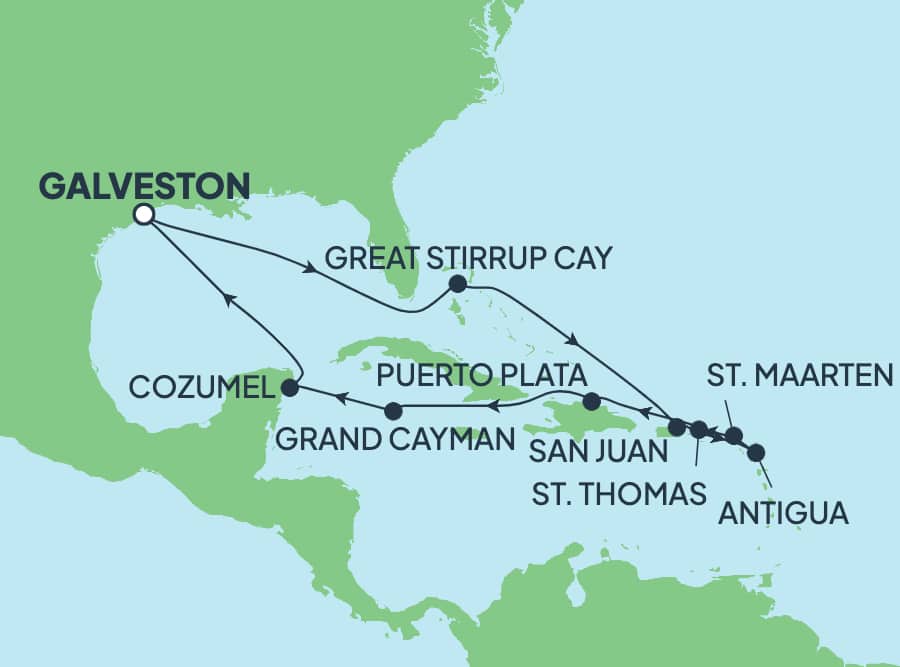 Live it up in The Caribbean on a 14-day roundtrip cruise aboard one of our most innovative ships, Norwegian Viva. Sit back and relax in your private beachfront cabana in Great Stirrup Cay, our private island paradise that’s just for you. Enjoy a leisurely bike ride through Philipsburg’s historic sites and take in the spectacular views as you learn about St Maarten’s rich past. Soar above the jungle canopy on a series of ziplines in San Juan. Or discover the world of Puerto Rican rum on a tour of the Casa Bacardí distillery. In Cozumel, explore the mysteries of the cenotes and sacred underground river as you take time to relax and purify with a Mayan spiritual cleanse.