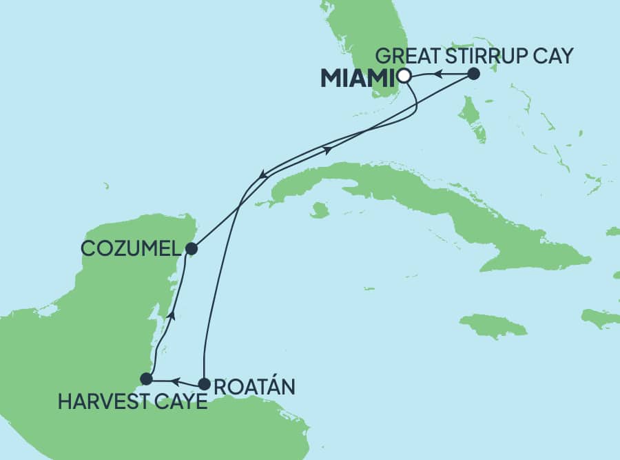 Todos nuestros cruceros a las Bahamas incluyen una visita de todo un día a Great Stirrup Cay, nuestro idílico paraíso isleño reservado solo para nuestros huéspedes. Pasea por playas de arena suave y blanca y disfruta de todas las actividades que tenemos para ofrecer. Haz buceo de superficie para ver maravillas submarinas, pasea en kayak en aguas cristalinas, diviértete en una aventura en WaveRunner®. Aquí la diversión nunca se acaba. Come algo en nuestro nuevo bufé en la playa de 8,500 pies cuadrados o simplemente relájate en tu cabaña privada frente al mar. Este paraíso tropical es solo para ti. Aprovéchalo.