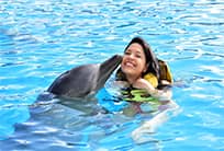 Next, your group of no more than eight participants will head to the Dolphin Lagoon where you’ll wade into the shallow, clear waters to begin your exclusive dolphin experience. You'll meet and play with a dolphin for 30 minutes, getting to know each other through hugs, kisses and rubdowns. The duration of the program is approximately 60 minutes, including orientation. After your dolphin swim, enjoy complimentary lunch at the dolphin marina and some free time to purchase memories of your experience with the dolphins.