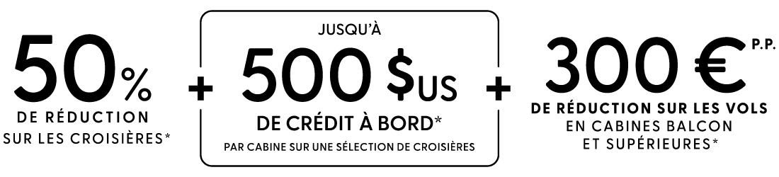Des crédits de croisière aux acomptes réduits en passant par les remises sur les passagers supplémentaires, retrouvez ici tous les moyens d'obtenir un maximum pour votre argent avec NCL. Ne manquez pas non plus nos nouvelles cabines pour passagers en solo. Les tarifs traditionnels d'occupation double ne s'appliquent pas ! Assurez-vous de consulter notre offre de croisière exclusive pour les personnes voyageant seules.