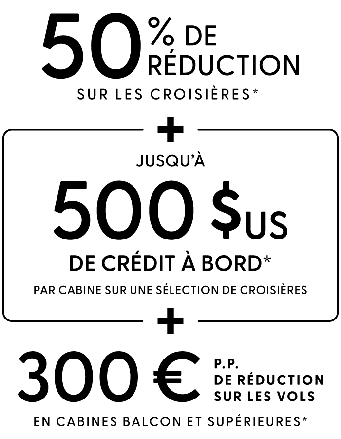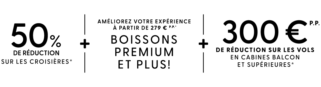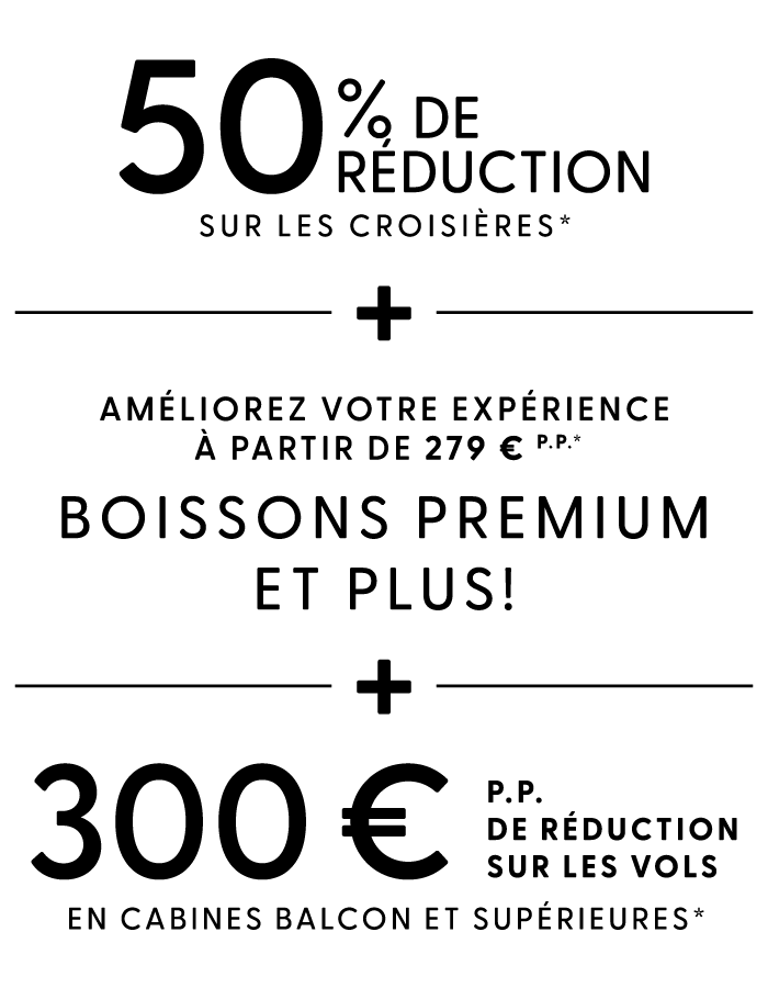 Le forfait n'est pas disponible pour les croisières de moins de 5 jours ni sur les croisières charter.