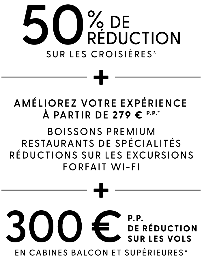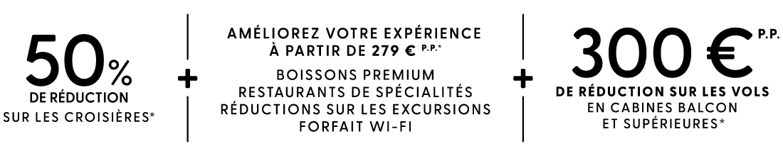Le forfait n'est pas disponible pour les croisières de moins de 5 jours ni sur les croisières charter.