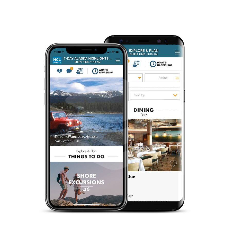 The all-new NCL app is so easy to use. Make onboard reservations, book shore excursions, view your itinerary and more. No Wi-Fi minutes required!