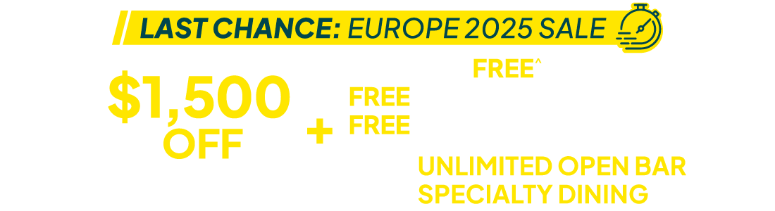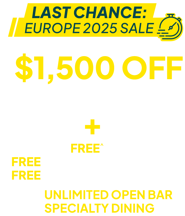 Reserve your 7+ day holiday today with reduced deposit per person. Only applicable when you book a club balcony suite or below.