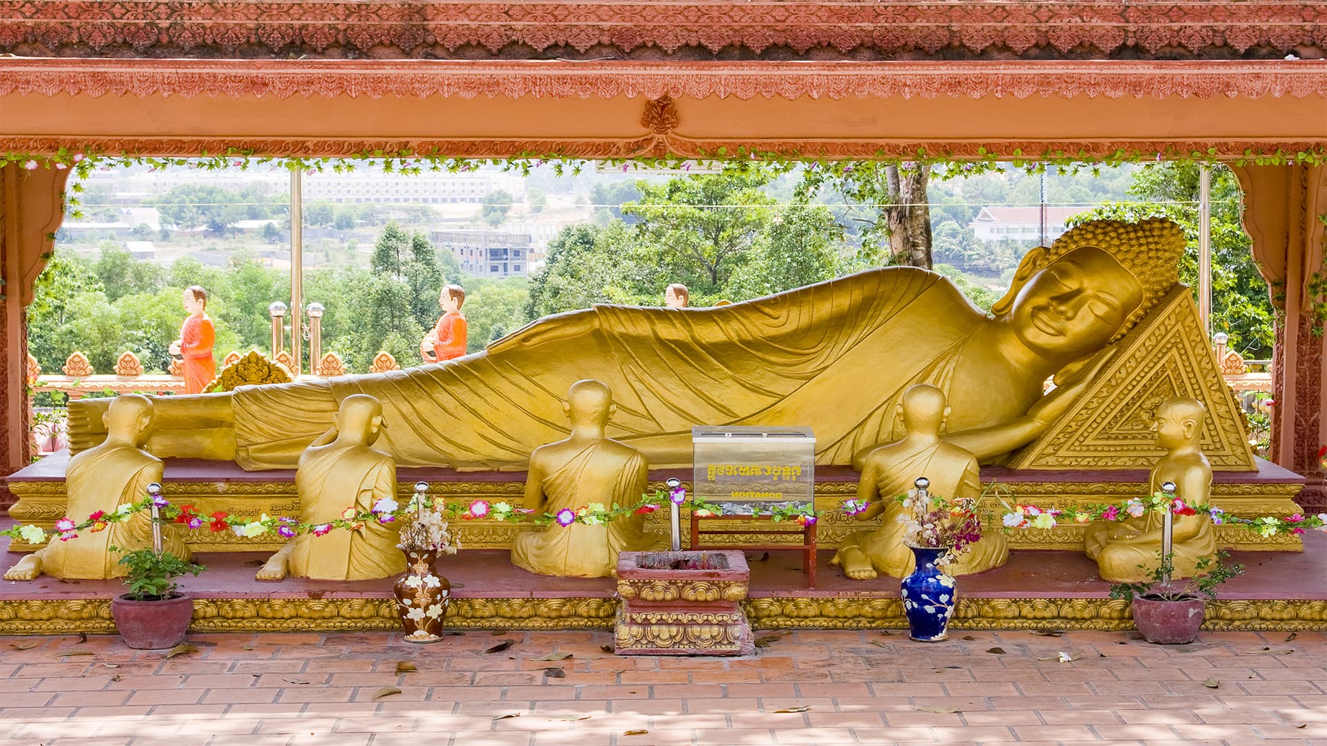 Sit back in the comfort of a tuk-tuk and zip through the streets of Sihanoukville, taking in the most historical and culturally important attractions. From inside the tuk-tuk – an open-air rickshaw of sorts for two people – you will enjoy a street-level view of the city highlights while listening to commentary that describes them. You can expect to stop for photos of a sugar-white beach shaded by palm trees and the Golden Lion Monument in the center of a roundabout, where you will learn what its statue of crouching lions represents and how it became a symbol of the city. You may also pass Phsar Leu, a market with more than 1,000 vendors offering most everything imaginable. Chances are, the enticing aroma of food cooking on braziers will be wafting through the air. At another point in the tuk-tuk tour, you will pause at the city’s somber War Memorial in Independence Square.
