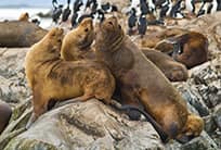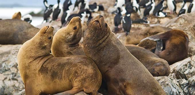 Approaching Sea Lions’ Island, you will see dozens of the namesake mammals clustered on the rocks. The males are typically twice the size of the females and weigh nearly 800 pounds. While pausing for photos at nearby Bird Island, you will notice that the main inhabitants are Imperial Cormorants and Magellanic Cormorants.