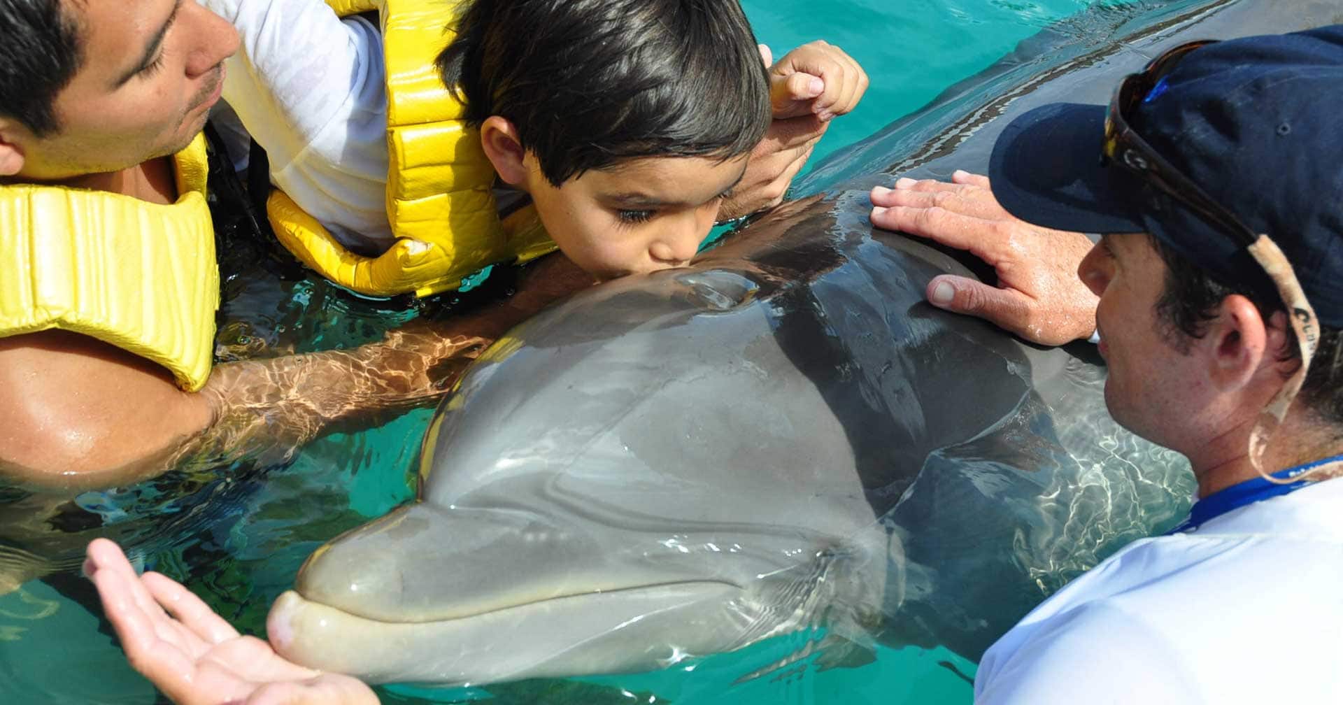 Interact with the world’s most fascinating creatures in a tropical atmosphere for a 40-minute dolphin experience, enjoy unlimited food and drinks, snorkel with tropical fish in the natural aquarium and venture onto the ocean for kayaking and paddle boarding. You’ll meet your guide outside your cruise ship for an approximate 5-minute taxi ride along the coast to the facility. Upon arrival, you’ll attend a 10-minute interactive orientation session so you can learn more about the dolphins’ history, physiology and anatomy. Next, step onto a waist-deep platform in a sparkling lagoon to experience a world of dolphin excitement! Greet your new dolphin friend with a “fin shake”, a hug and a kiss. Time in the water with the dolphins is 40 minutes. Relax after your dolphin interaction and take full advantage of everything the facility has to offer. Stop by the palapa restaurant for lunch with the family and cool off with alcoholic and non-alcoholic beverages. Kids and adults alike will love Serenity Cove, a safe inlet with snorkel equipment where you can swim through an underwater aquarium filled with tropical fish! Head out to the ocean for fun-filled activities like kayaking and paddle boarding. The Dolphin Encounter program includes all food, beverages, snorkeling, kayaking and paddle boarding. Photos, souvenirs, towels, and lockers are at an additional charge. After your tour you can easily walk into downtown Cozumel for some great shopping before heading back to the dolphin entrance where your transportation will take you back to the ship.