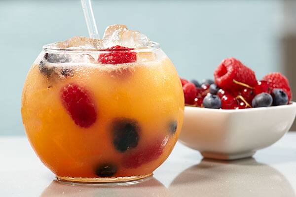 As a signature drink of Norwegian Cruise Line, the Rebellious Fish is as eye-catching as it is refreshing. Most often served in a fishbowl-type glass, this colorful drink is garnished with fresh berries. Yum!