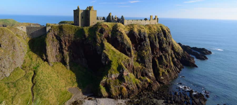Dunnottar Castle, just outside Aberdeen, is a dramatic cliffside fortress with a rich history, famously resisting sieges and safeguarding the Scottish crown jewels.
