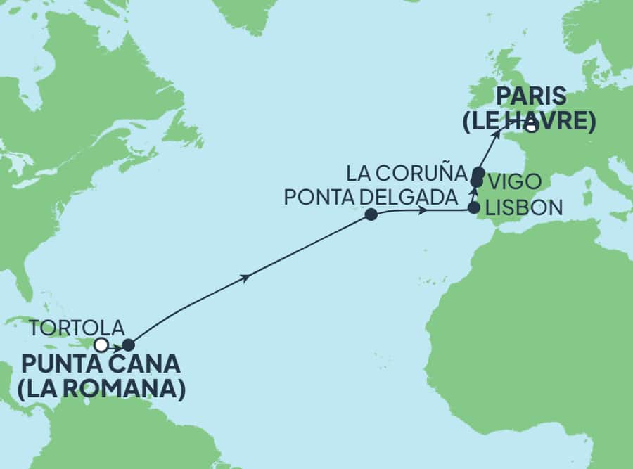 Embark on an incredible transatlantic journey from the Dominican Republic to France aboard Norwegian Sky®. Explore gorgeous beaches in Tortola, British Virgin Islands. Dip into relaxation in Ponta Delgada's natural hot springs and soak in scenic vistas while touring the countryside. Then journey from A Coruña to the UNESCO World Heritage Site city of Santiago de Compostela and see the awe-inspiring architecture of the famous cathedral at Plaza del Obradoiro, explore the best of Old Town and savour local cuisine.