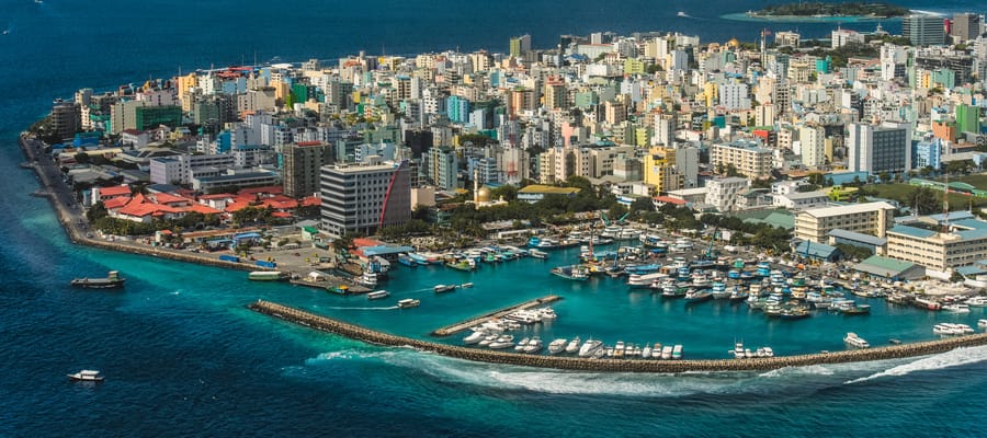 Malé, the capital of the island nation of Maldives, is known for its colorful buildings and being one of the most densely populated cities in the world. Visit the Malé Friday Mosque, built in 1658, to experience its ornate architecture. Scuba dive among the many atolls that surround the capital. Stop at the many restaurants and shops along Majeedhee Magu. The harbor houses a fish and produce market where visitors can taste the daily catch or try the local fruit.