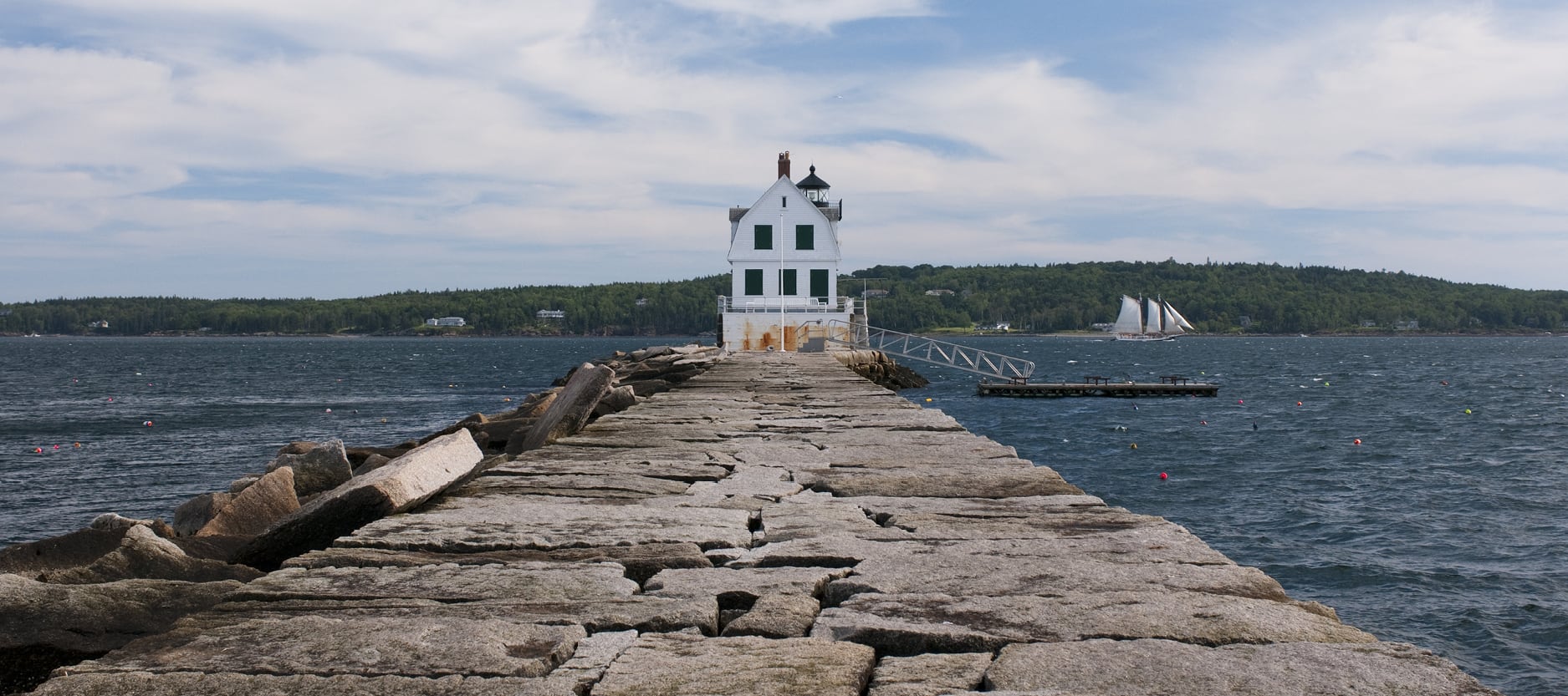 The Breakwater at Rockland Harbor along the coast of Maine.
